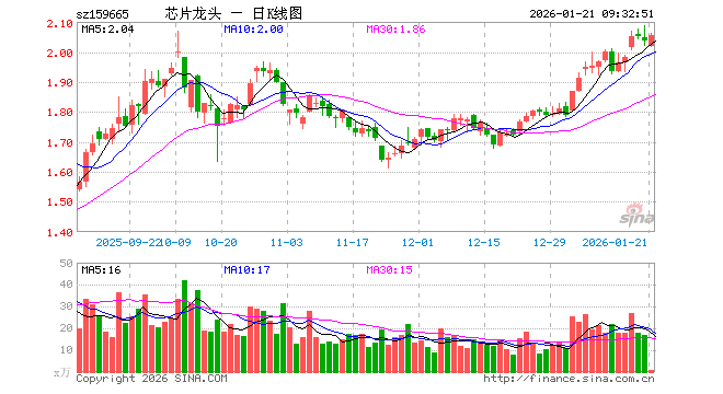 1月21日,半导体龙头ETF(159665)开盘跌0.93%,报2.017元。半导体龙头ETF(159665)重仓股方面,寒武纪开盘跌0.57%,中芯国际跌1.02%,海光信息涨3.65%,北方华创跌0.24%,澜起科技涨0.70%,兆易创新涨1.03%,中微公司跌0.09%,豪威集团跌0.72%,长电科技跌0.97%,紫光国微跌1.15%。