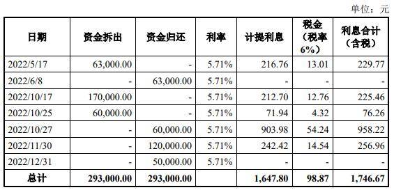 实控人资金拆借方面,2022年,朱平因家庭支出临时向公司借支款项,并与公司签订借款协议,资金拆出29.3万元,双方约定了5.71%的年利率。截至2023年6月15日,朱平已将上述拆出资金本金及利息归还公司。