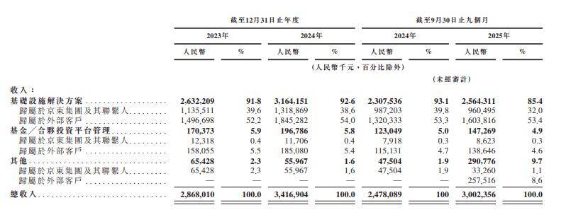 运营数据方面,京东产发展现出强劲的市场竞争力。往绩记录期内,已竣工现代化基础设施资产期末平均出租率超90%,稳定运营资产出租率更是高达93%,高于新经济领域平均水平约10个百分点。客户基础持续多元化,截至2025年9月30日,基础设施解决方案收入中来自外部客户的贡献占比达62.5%,较2018年独立运营初期实现显著提升。