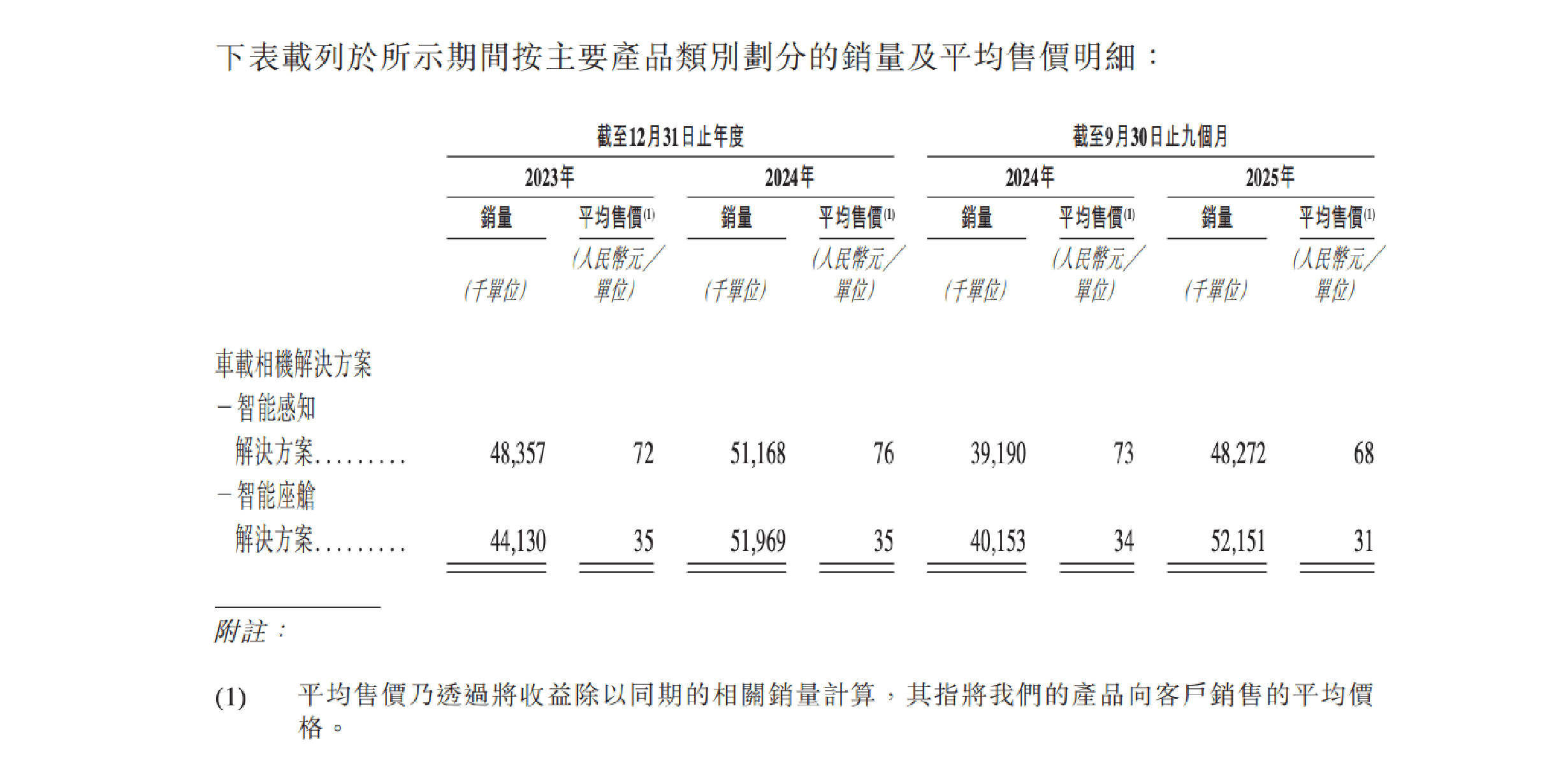 招股书显示,公司智能感知相机与智能座舱相机的平均售价均呈下行趋势。智能感知相机单价由2024年的约76元下降至2025年前三季度的约68元;智能座舱相机同期亦从约35元降至31元。价格下行的同时,公司出货量持续增长,成为拉动收入的主要变量。