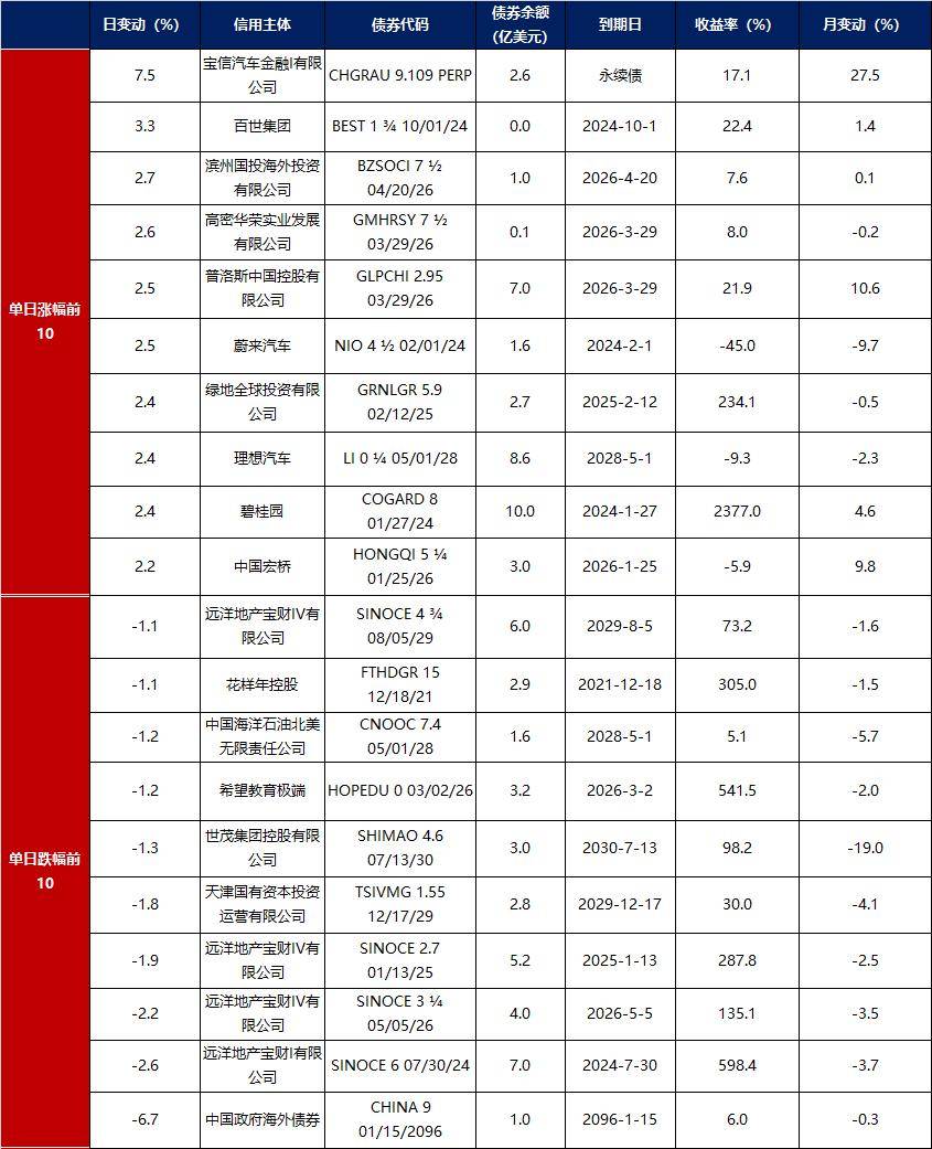 3. 中资美元债每日价格变动(截至1月26日收盘)