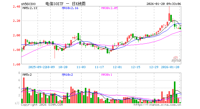 1月20日,电信50ETF(560300)开盘涨0.33%,报2.101元。电信50ETF(560300)重仓股方面,新易盛开盘跌0.41%,中际旭创涨0.00%,中国联通涨0.00%,中国移动涨0.00%,中国电信涨0.17%,银之杰涨0.00%,中国卫通涨0.00%,中兴通讯跌0.18%,天孚通信跌0.89%,紫光股份跌0.11%。