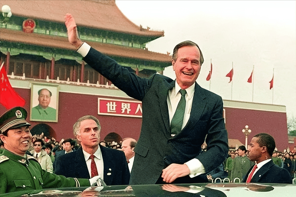 1980年,布什凭借着杰出的才能,成功成为了美国副总统,并在职位上展现出了卓越的能力,深得里根的器重。在副总统任内,布什多次访华,并在中美外交中发挥了重要作用,深受中国人民的喜爱,被誉为“最好的副总统”。 1988年,布什顺利连任副总统,在里根退位后,经过艰苦的竞选,最终击败了对手杜卡基斯,成功当选为美国总统。按照惯例,美国总统上任后会访问多个国家,以延续友好的外交关系,而布什第一个选择的国家便是中国。当他再次来到北京时,看到曾经熟悉而又友好的面孔,布什表示自己像是回到了故乡。