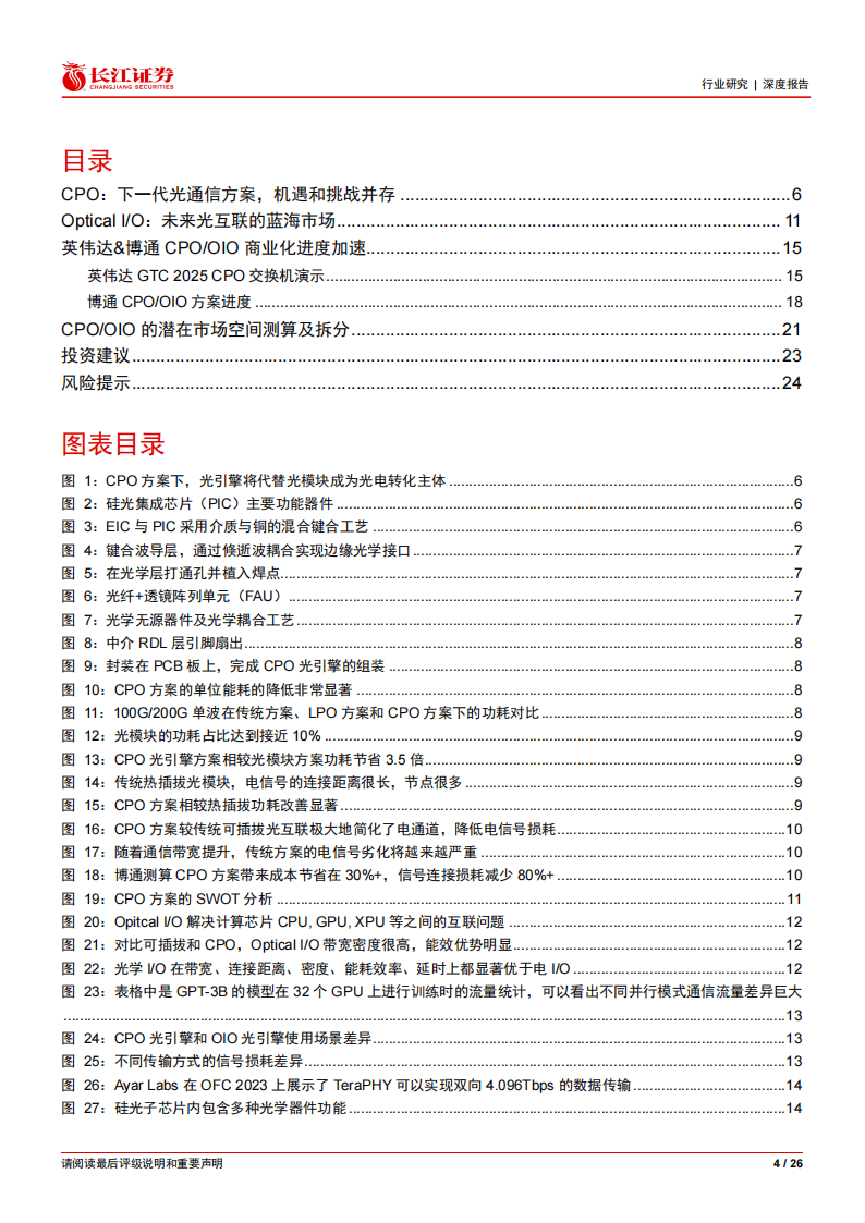 市场前景的测算勾勒出令人振奋的图景。报告基于未来AI算力芯片的用量及相关技术渗透率,进行了多情景预估。在中性假设下,仅CPO与OIO光引擎两者的潜在市场规模合计就可能接近千亿美元。更为重要的是,这个新兴市场由半导体芯片、光学无源器件与封装、外置光源等多个环节构成,为产业链上的相关厂商提供了广阔的参与空间。报告提及,国内部分在光通信领域有深厚积累的厂商,已在相关环节有所布局或具备参与能力。
