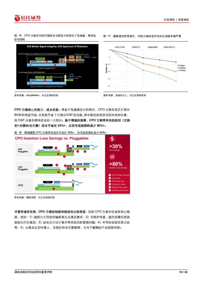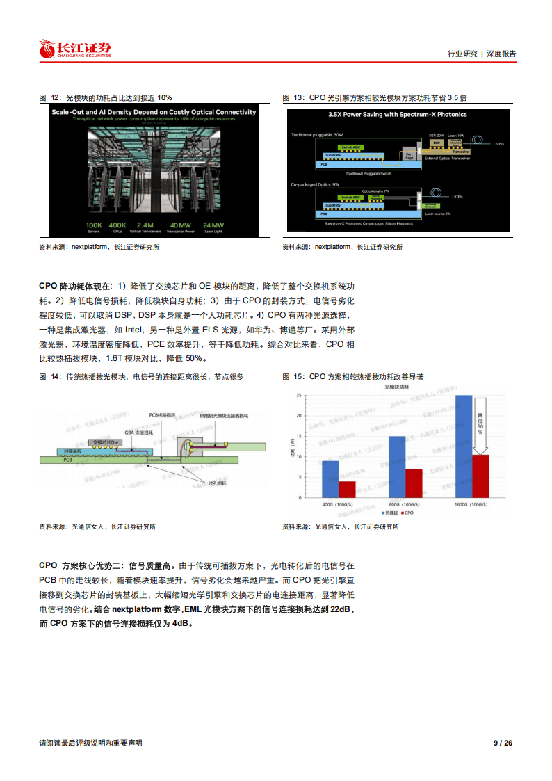 长期以来,可插拔光模块是数据中心内部实现光电转换的主流方案。然而,随着人工智能等应用对算力需求的爆炸式增长,传统方案在功耗、成本与信号完整性方面面临瓶颈。CPO技术应运而生,其核心在于将光引擎与交换机芯片封装在同一基板上,极大缩短了电信号传输路径。根据报告分析,这种高度集成的方案能带来显著优势:系统功耗最高可降低至传统方案的约三分之一,信号连接损耗减少超过八成,并在系统级别实现可观成本节约。尽管该技术目前仍面临可维护性、热管理等挑战,但行业巨头推出的外置光源、液冷等优化设计,正推动其迈向商业化关键阶段。
