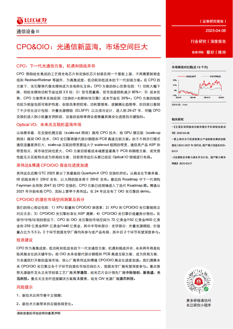 今天分享的是:2025光通信设备行业CPO&OIO:光通信新蓝海,市场空间巨大
