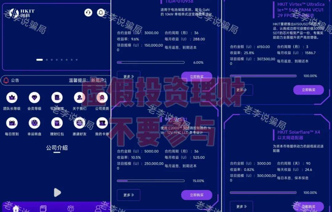 套用某公司信息,打着短剧投资旗号,推出各种虚假投资理财产品,以高额回报率吸引用户投资参与。