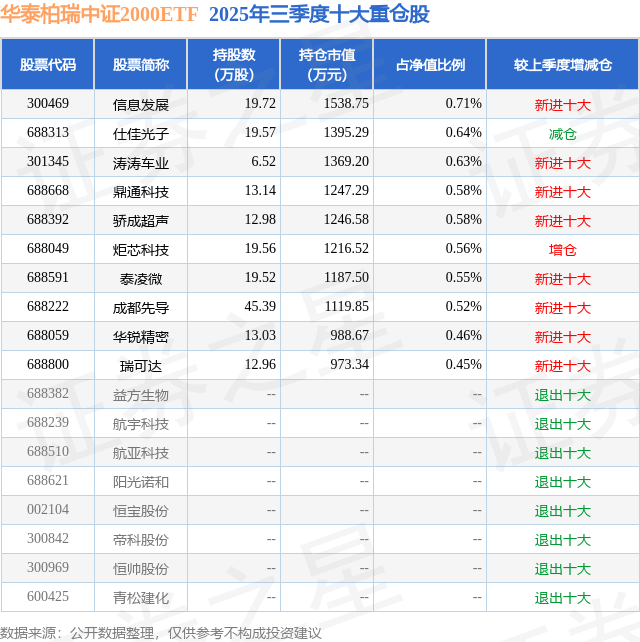 华泰柏瑞中证2000ETF的前十大重仓股如下: