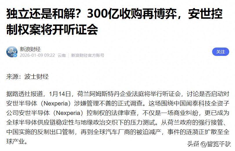 安世事件,早已从一句“企业管理不善”蜕变成一场赤裸裸的利益较量。荷兰法院1月14日的听证会,表面上是在讨论是否启动正式调查,实则是中荷博弈的一记关键落子,更是中企出海拿回主导权的生死一刀。