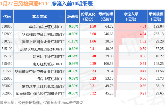 【ETF观察】1月27日风格策略ETF净流入12.95亿元