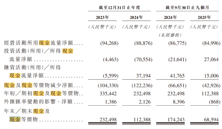 目前,亦诺微尚未实现商业化。2023年、2024年及2025年1-9月,亦诺微研发开支分别为1.36亿元、1.12亿元、7230.4万元。研发投入消耗了该公司大量现金。截至2025年9月底,亦诺微尚现金及现金等价物仅剩6859.4万元。
