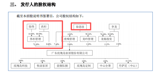 玫瑰岛成立于2006年,截至招股说明书签署日,肖杉直接持有玫瑰岛股份比例为8.66%,伟杉管理直接持有玫瑰岛股份比例为72.20%,肖杉、徐伟分别持有伟杉管理90.00%、10.00%的股权,因此,徐伟、肖杉直接或间接控制公司股东会表决权比例合计为80.86%。同时,徐思佳直接或间接控制玫瑰岛股东会表决权比例合计为 11.41%。而徐伟、肖杉二人为夫妻关系,徐思佳系徐伟、肖杉的女儿,因此上述三人共同控制玫瑰岛股东会表决权比例合计为92.27%,为公司共同实际控制人。