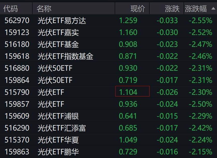 光伏概念股走弱,迈为股份跌超6%,捷佳伟创跌超5%,阳光电源、德业股份跌超4%。