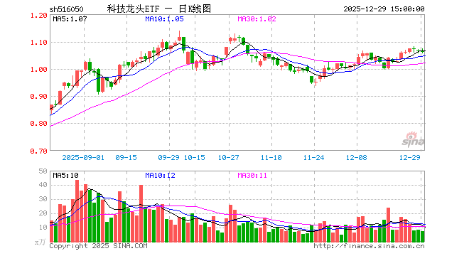 12月29日,科技龙头ETF(516050)跌0.09%,成交额780.22万元。当日份额减少200.00万份,最新份额为2.99亿份,近20个交易日份额减少4200.00万份。最新资产净值计算值为3.18亿元。