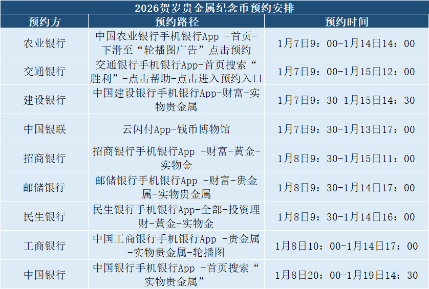 重磅!2026马年贵金属纪念币,今日9:00开启新一轮预约!