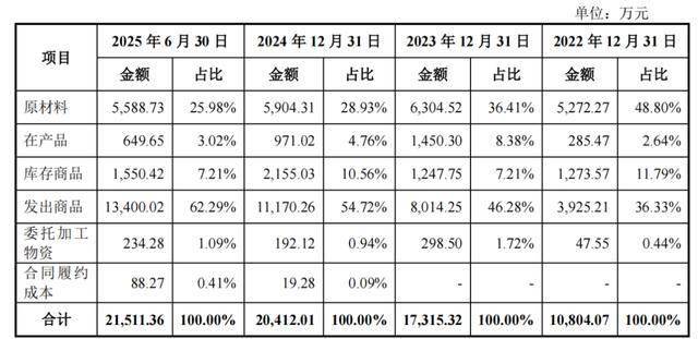 公司存货主要包括发出商品、原材料、在产品和库存商品。其中,发出商品占比快速增长,由期初的36.33%增至期末的62.29%。