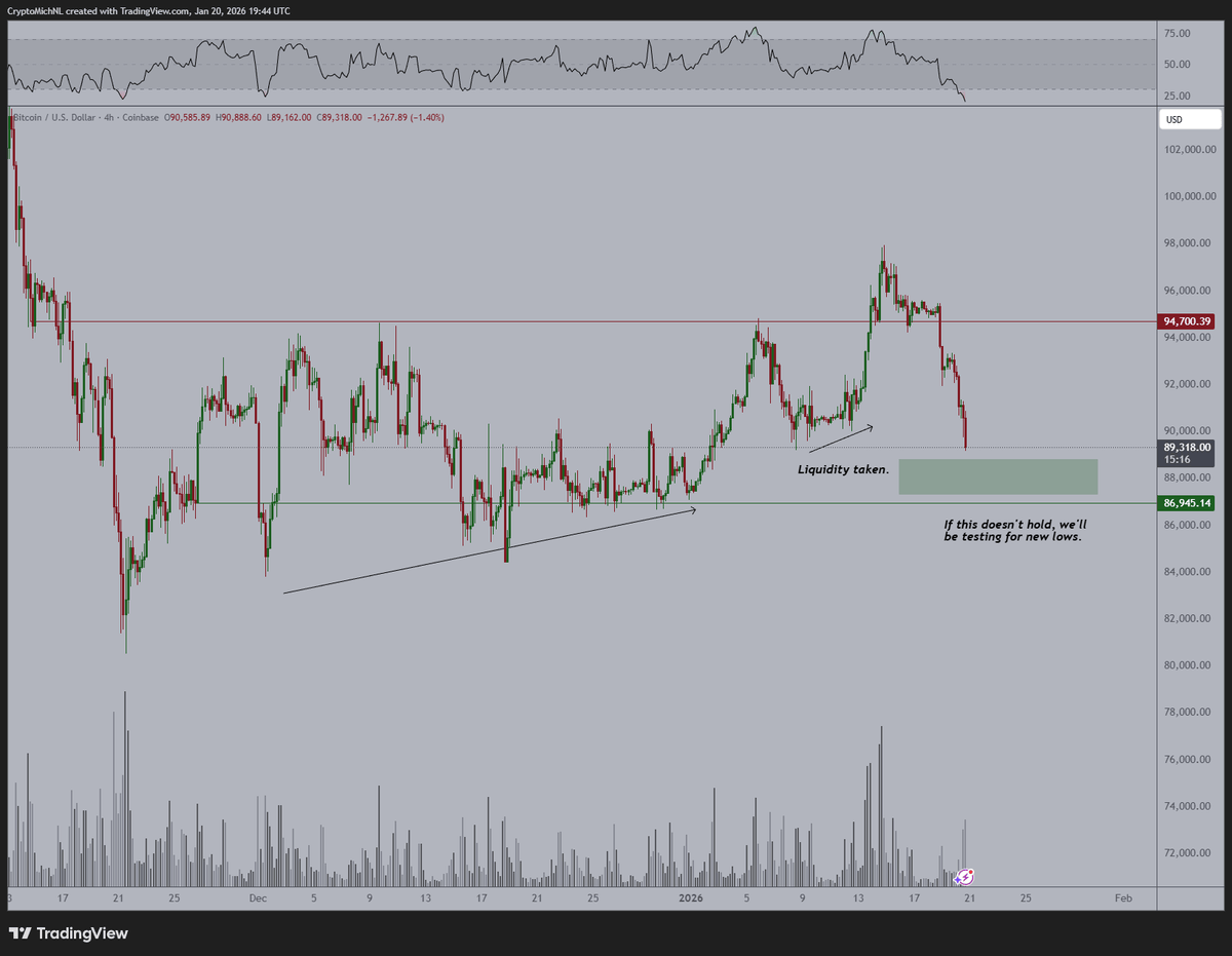 “比特币跌落区间并开始暴跌,受地缘政治恶化影响”,MN Capital创始人Michael van de Poppe周三在X平台发文表示。