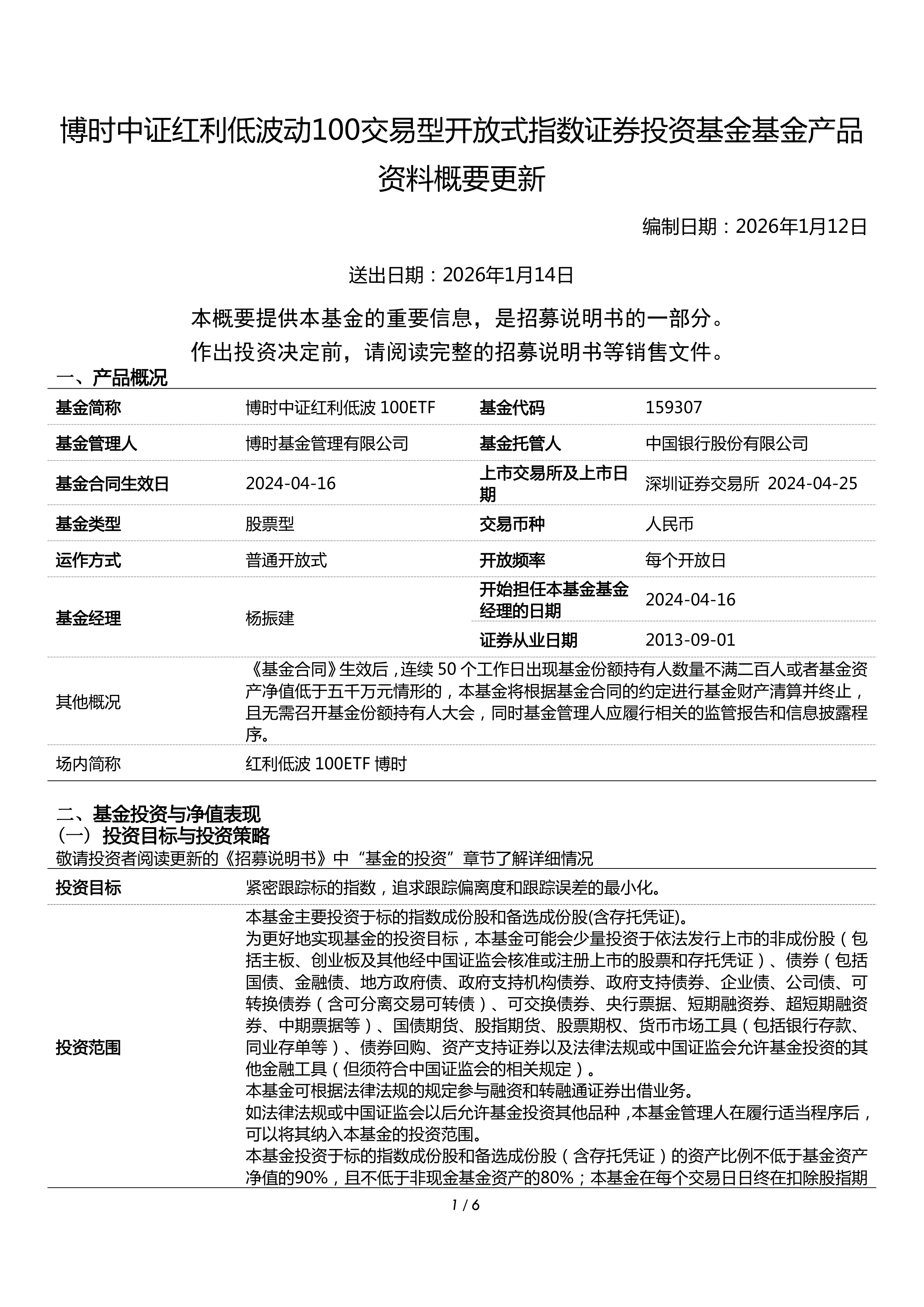 基金-红利低波100ETF-博时中证红利低波动100交易型开放式指数证券投资基金基金产品资料概要更新