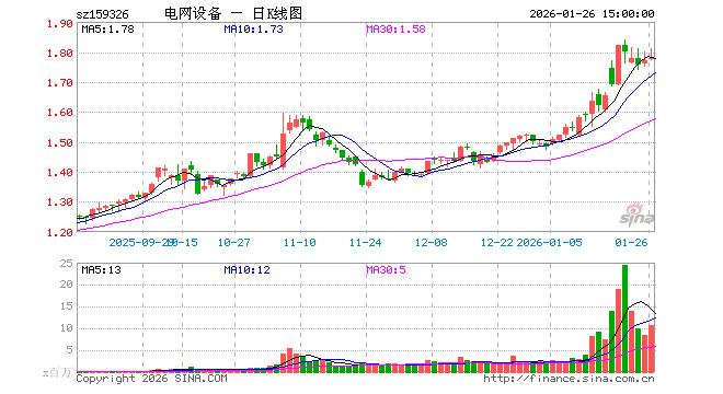 1月26日,电网设备ETF(159326)涨0.40%,成交额19.29亿元。当日份额增加4.04亿份,最新份额为98.72亿份,近20个交易日份额增加73.59亿份。最新资产净值计算值为175.45亿元。