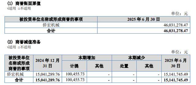 招股书显示,公司于2022年至2023年收购云顶精密、佳飞链条100%股权及侨宏机械70%股权。其中云顶精密、佳飞链条系同一控制下合并取得,侨宏机械系非同一控制下合并取得,确认商誉4603.12万元。报告期内持续计提商誉减值。