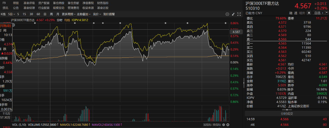 需要说明的是,尽管沪深300ETF成交量创下纪录,但是市场走势依然顽强。截至收盘,沪深300指数上涨0.22%,上证指数上涨0.27%,创业板指数下跌0.57%。