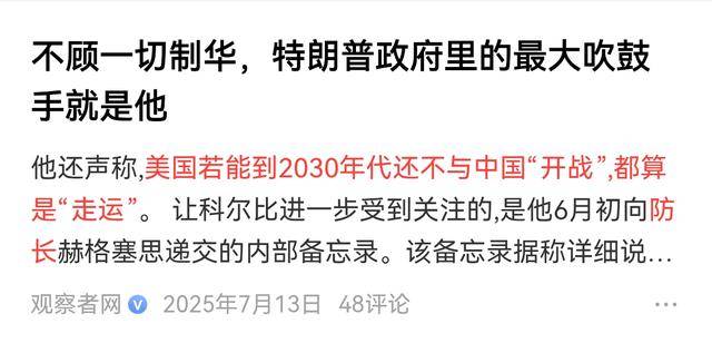 美国国防部政策副部长科尔比的一番狂言,将中美关系推向危险的舆论漩涡。在一场公开战略研讨会上,他竟公然抛出惊人论调,美国若能到2030年代还不与中国开战,都算是‘走运’了。