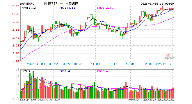 1月6日,通信ETF(515880)跌0.35%,成交额18.31亿元。当日份额减少1300.00万份,最新份额为43.34亿份,近20个交易日份额增加7300.00万份。最新资产净值计算值为135.57亿元。