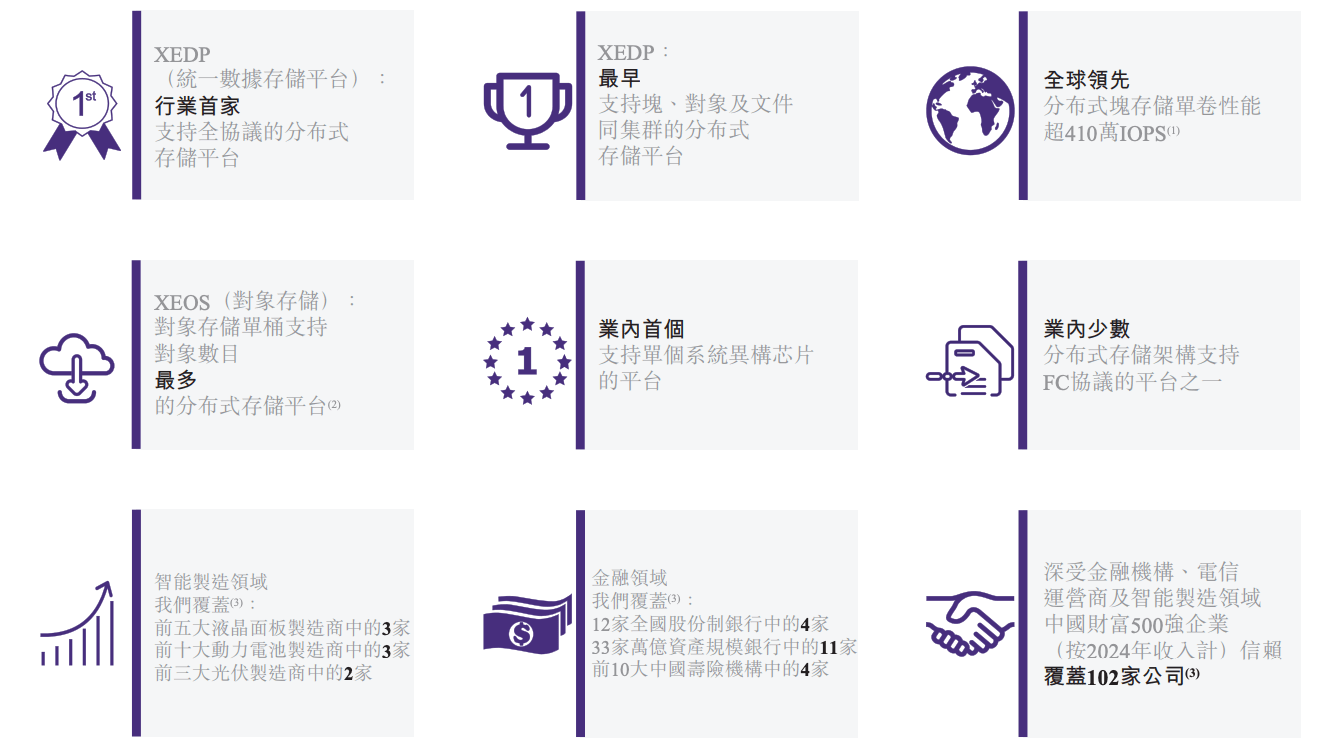XSEA采用先进网络技术,配备高速互联网络线缆和交换机,可以实现计算机与存储设备间近乎瞬时的数据传输,招股书显示,XSEA支持的单个逻辑卷可达约410万IOPS,能为AI工作负载、向量检索及高速交易提供快速并行访问能力。