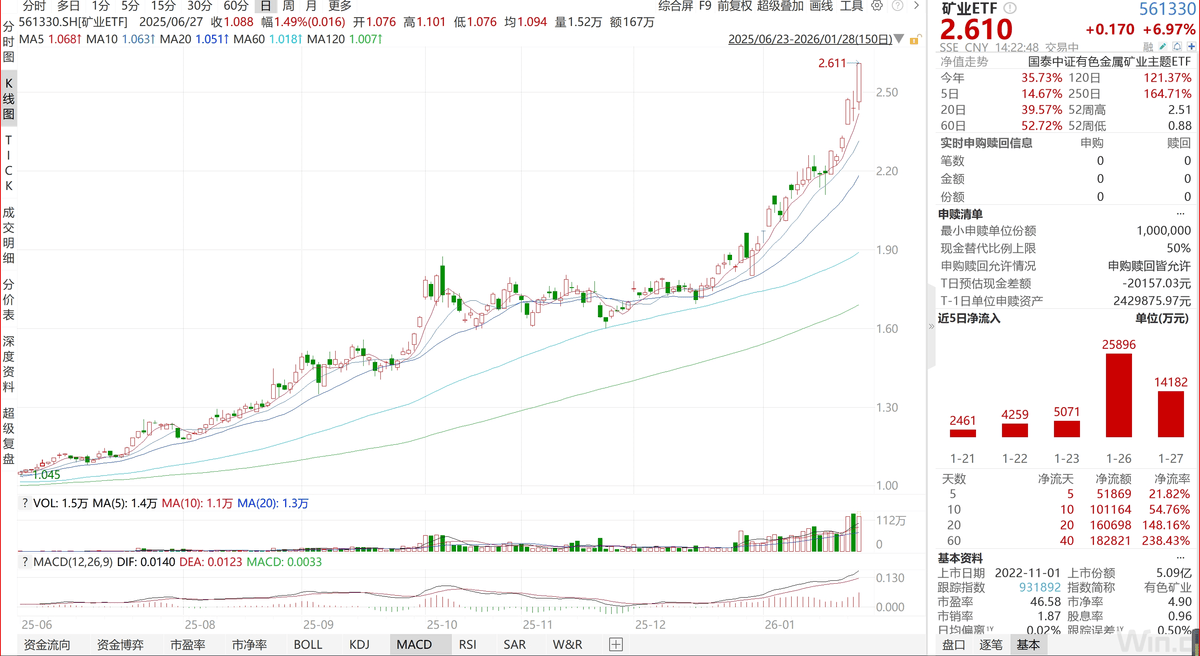 尽管近期有色矿业板块涨幅显著,但在地缘冲突加剧导致能源价格波动的背景下,有色矿业板块在后期回调后可能仍有一定投资空间。对于希望便捷、高效布局矿业板块长期机遇的普通投资者而言可借道矿业ETF (561330)一键布局A股有色金属矿业龙头公司。