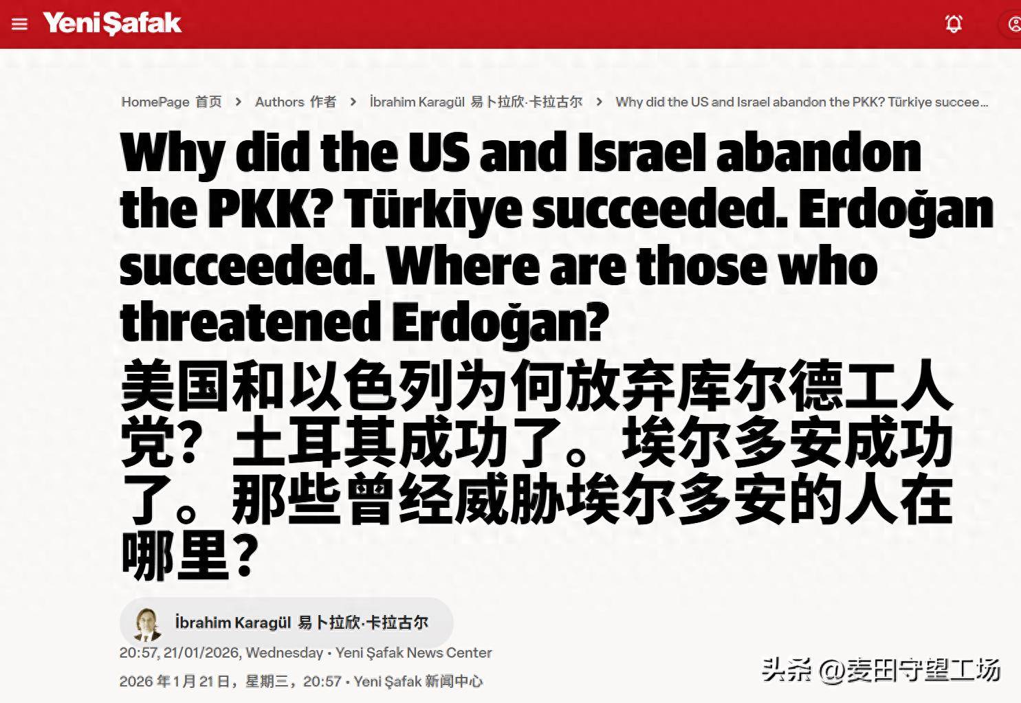 中东局势一直充满不确定性,时常让人捉摸不透。就在大家的目光集中在伊朗问题上时,叙利亚却突然爆发了新的变故。据土耳其媒体《新黎明报》在2026年1月21日的报道,叙利亚局势剧变,库尔德武装惨败,叙利亚过渡政府军步步紧逼,不断攻占库尔德人的阵地。而在这一切发生的背后,分析得出一个令人震惊的结论——美国和以色列的背叛。