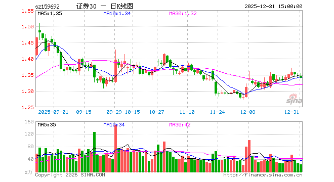 12月31日,证券ETF东财(159692)跌0.59%,成交额3181.35万元。当日份额增加200.00万份,最新份额为6.89亿份,近20个交易日份额减少1.49亿份。最新资产净值计算值为9.24亿元。