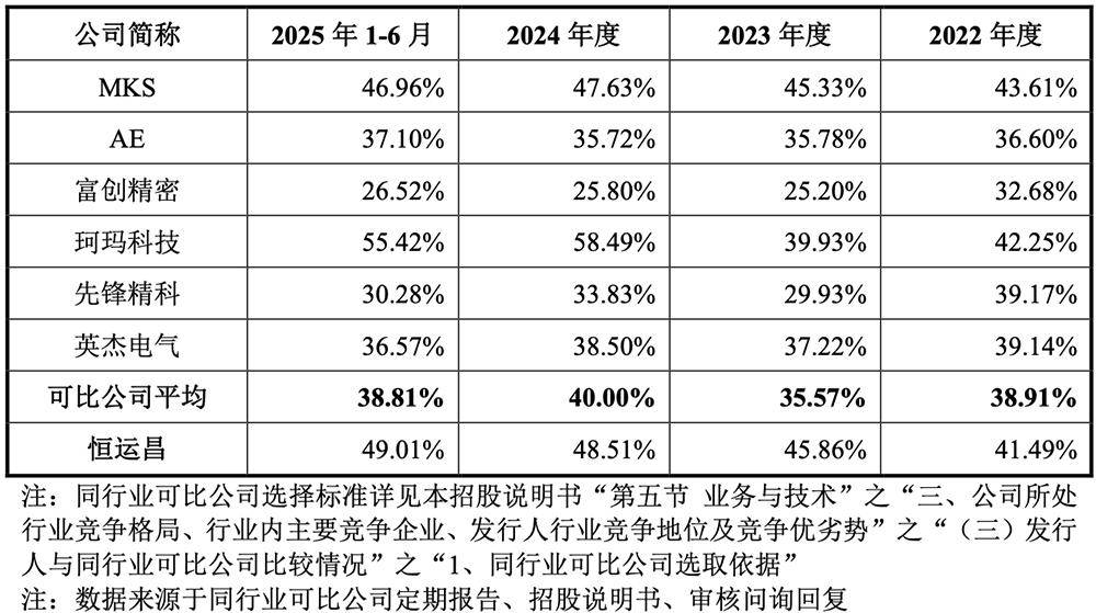 同期,该公司主营业务毛利率为41.49%、45.86%、48.51%、49.01%,与MKS较为接近。