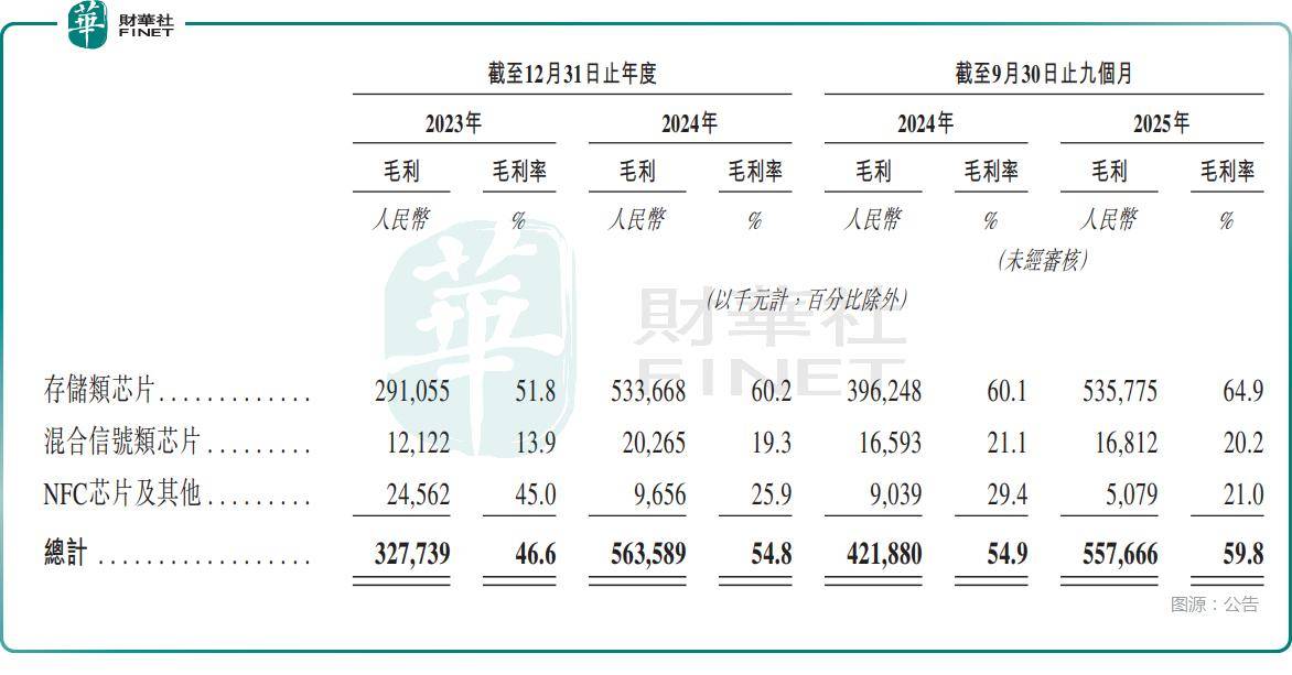 结合毛利率来看,存储类芯片的毛利率也从2023年的51.8%,连续提升至2025年前三季度的64.9%。
