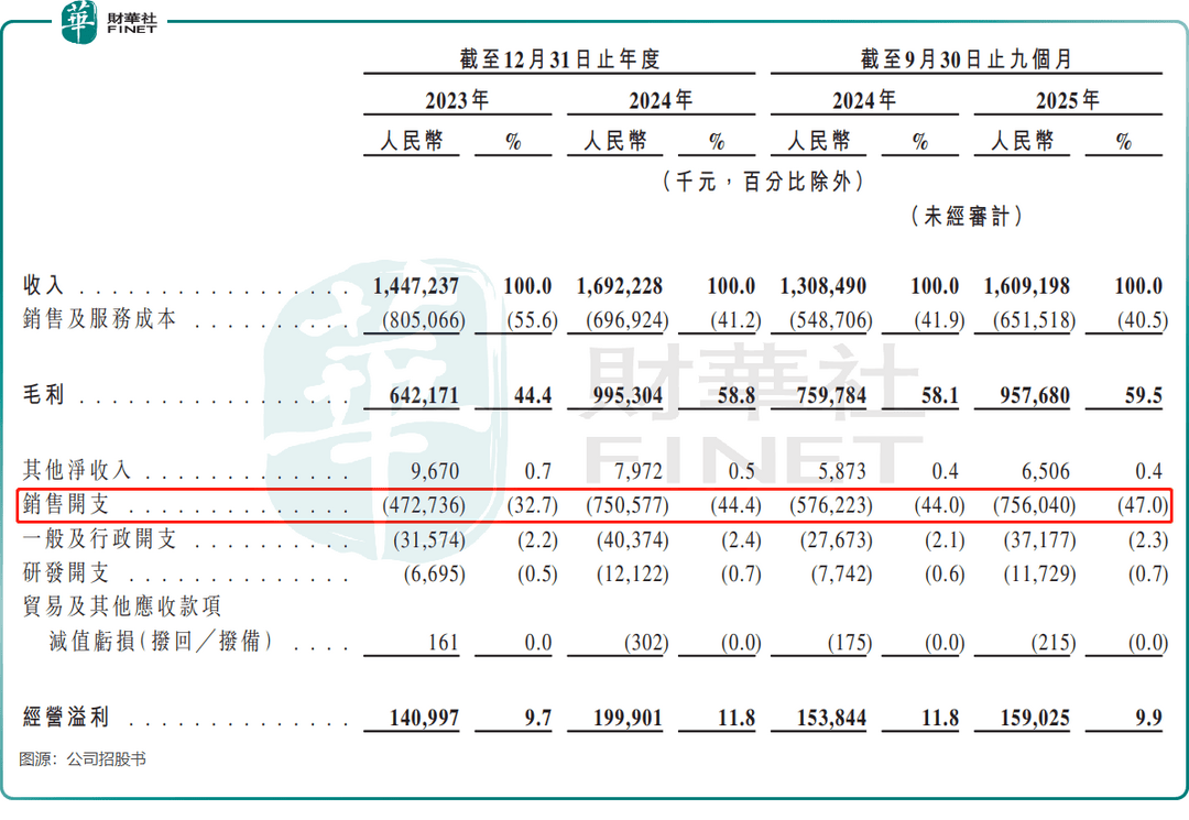“重营销、轻研发”的增长模式,同样面临可持续性的拷问。招股书显示,2025年前三季,公司的推广及技术服务开支接近6.7亿元,而同期研发费用仅1172.9万元,占营收比重低至0.7%,远低于康比特(833429.BJ)等同行的研发投入水平。这种策略短期可依靠流量快速起量,但长期缺乏核心技术支撑的产品极易陷入同质化红海。
