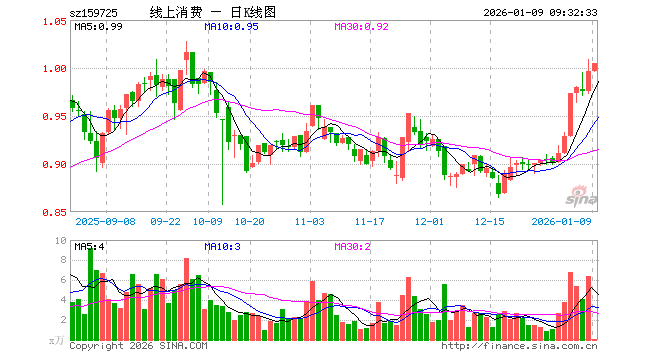 1月9日,线上消费ETF(159725)开盘涨0.00%,报0.996元。线上消费ETF(159725)重仓股方面,科大讯飞开盘跌0.49%,巨人网络跌0.02%,恺英网络涨0.33%,昆仑万维跌0.58%,拓维信息跌1.78%,三七互娱跌1.72%,光线传媒跌0.06%,神州泰岳跌0.25%,芒果超媒跌0.24%,完美世界跌0.35%。