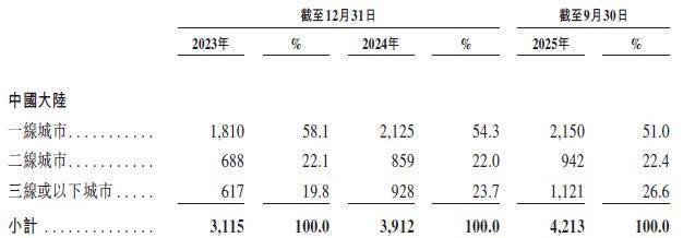 截至2025年9月30日,三线及以下城市门店占比已提升至26.6%。然而,下沉市场并非蓝海。这里虽然租金人工成本较低,但消费单价和频次同样更低,对极致性价比的要求更高,竞争同样白热化。