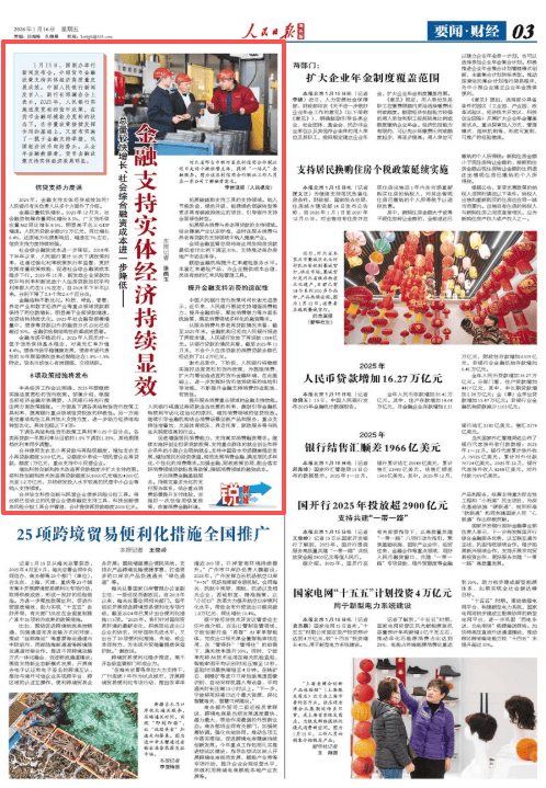 2025年,金融支持实体经济成效如何?人民银行有关负责人从多个方面作了介绍。