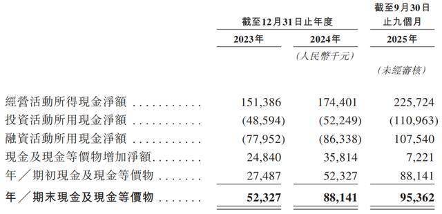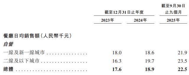 值得注意的是,自营餐厅和加盟餐厅的差距其实不大,2025年1-9月,加盟餐厅平均客单价略高于自营餐厅,但相较而言,自营餐厅可以更好的把控现金流。随着自营餐厅产生的收入占比有所提升,应收账款周转天数从2023年的9.1天减少至2024年的5.1天,且进一步减少至截至2025年9月30日止九个月的3.3天。