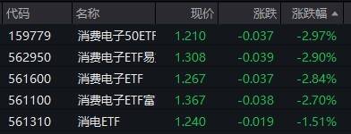 消费电子概念股走低,生益科技跌超6%,澜起科技跌超5%,工业富联、中芯国际跌超4%。