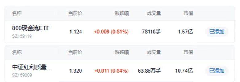 低费率中证红利质量ETF(159209)、800现金流ETF(159119)联袂冲击历史新高!贵州茅台涨8.03%!