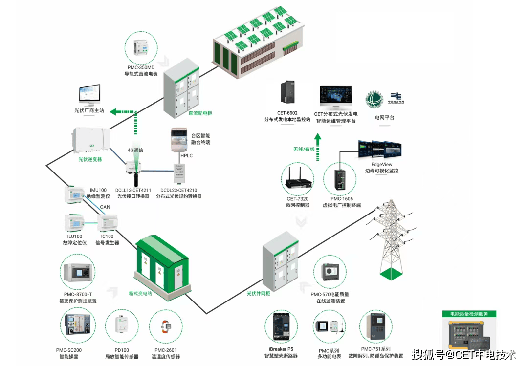 2025年,CET中电技术在广东省内累计保障了近300个光伏系统集成项目的交付,并为其部署CET分布式光伏电力监控系统解决方案及配套产品,方案采用 “ 源-网-荷-储 ” 深度协同核心理念,可全方位展示整个光伏电站的运行情况,促进可再生能源就地消纳,提高能源利用效率,并与大电网灵活互动,实现备用、调峰、需求侧响应等双向服务,在保障用电可靠性的同时实现绿色低碳的生产运行。