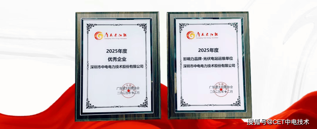 CET中电技术受邀参加本次会议,凭借其在新能源领域的创新应用与卓越品牌力荣获广东省太阳能协会“年度优秀企业”及“年度影响力品牌-光伏电站运维单位”称号。