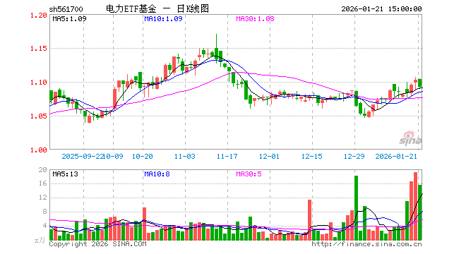 1月21日,电力ETF基金(561700)跌1.00%,成交额1710.53万元。当日份额增加1050.00万份,最新份额为2.37亿份,近20个交易日份额增加8850.00万份。最新资产净值计算值为2.59亿元。