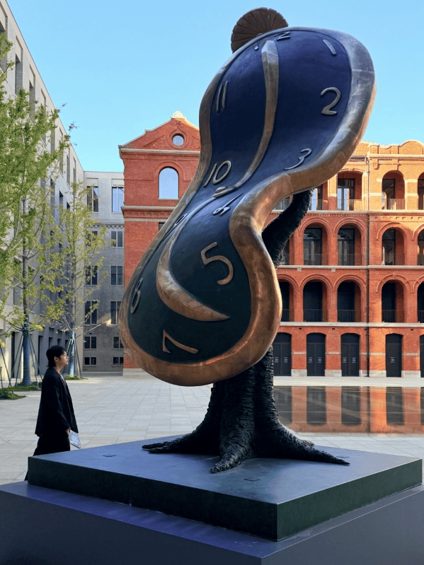▲上海外滩老市府达利展中的大型雕塑装置《时间之舞I》吸引众多观众合影打卡(图源:大众点评达人@王夜里)