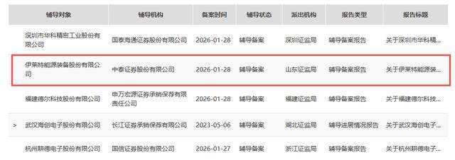 1月28日,伊莱特能源装备股份有限公司(下称“伊莱特”)在山东证监局进行辅导备案,辅导机构为中泰证券。