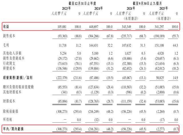 酷芯微尚未实现盈利。2023年、2024年,酷芯微收入分别为1.05亿元、4.49亿元,亏损分别为3.08亿元、2.16亿元。2025年前9个月,公司收入为3.41亿元,同比微降;亏损为227.7万元,同比大幅减亏;毛利率为44.3%。