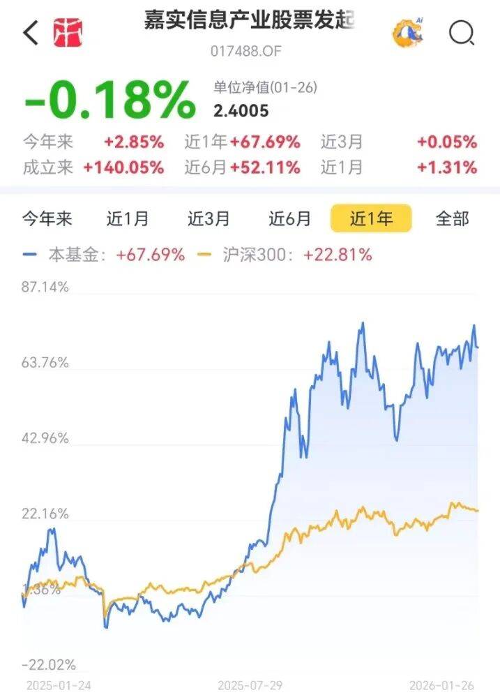根据Choice数据显示,其中,李涛管理的嘉实信息产业股票发起式A聚焦新一轮信息革命下AI算力、AI应用等核心优质企业,全年收益率达62.6%,超越基准24个百分点。成立以来,净值增长超140%。