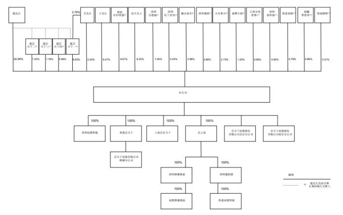 紧随IPO完成后,龙冬庆、王彬、艾康林、龙芯天下一、龙芯天下二、龙芯天下三、龙芯天下四及深圳芯港通将共同有权行使芯天下股东大会约62.4%的投票权,共同构成公司控股股东集团。
