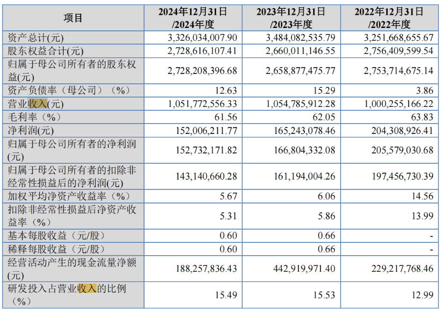 招股书显示,2022年至2024年,天康制药的归母净利润已从2.04亿元滑落至1.53亿元,同期扣非净利润从1.97亿元下降至1.43亿元。