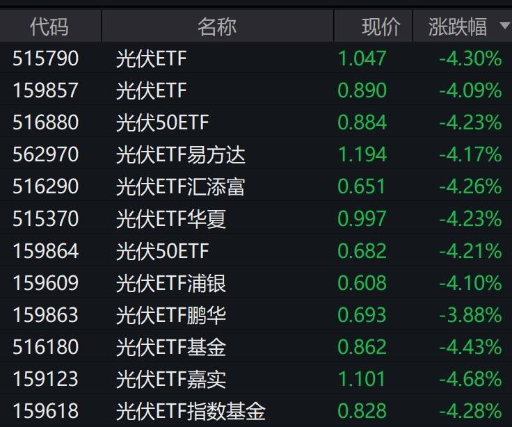 光伏概念股走低,TCL中环跌超6%,迈为股份、捷佳伟创跌超5%,隆基绿能、TCL科技、通威股份跌超4%。